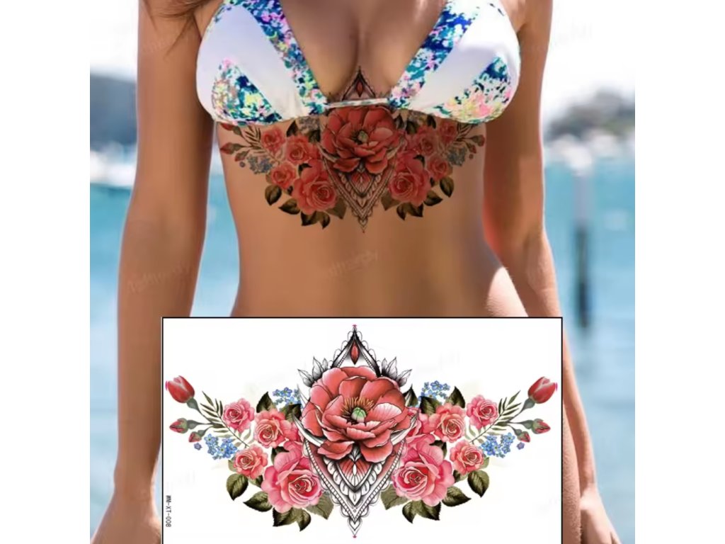 Dočasné Voděodolné Tetovačky - Sexy tetování na břicho, záda, dekolt- Květy