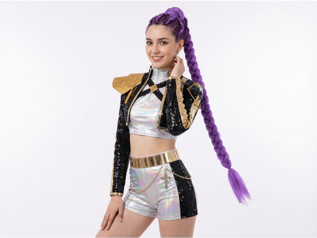 Vstup do světa K-pop Demon Hunters s kostýmem inspirovaným ikonickou postavou Rumi. Tento outfit spojuje futuristický design s tradičními prvky bojovnice, čímž vytváří nezapomenutelný look pro každého fanouška.