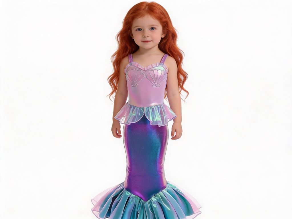 K šatům je možné objednat krásnou červenou paruku mořské panny Ariel. Šaty se prodávají samostatně - bez paruky.
