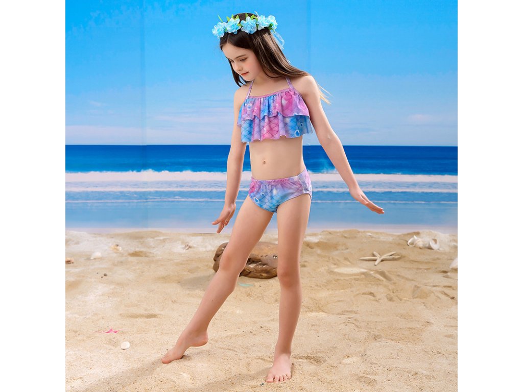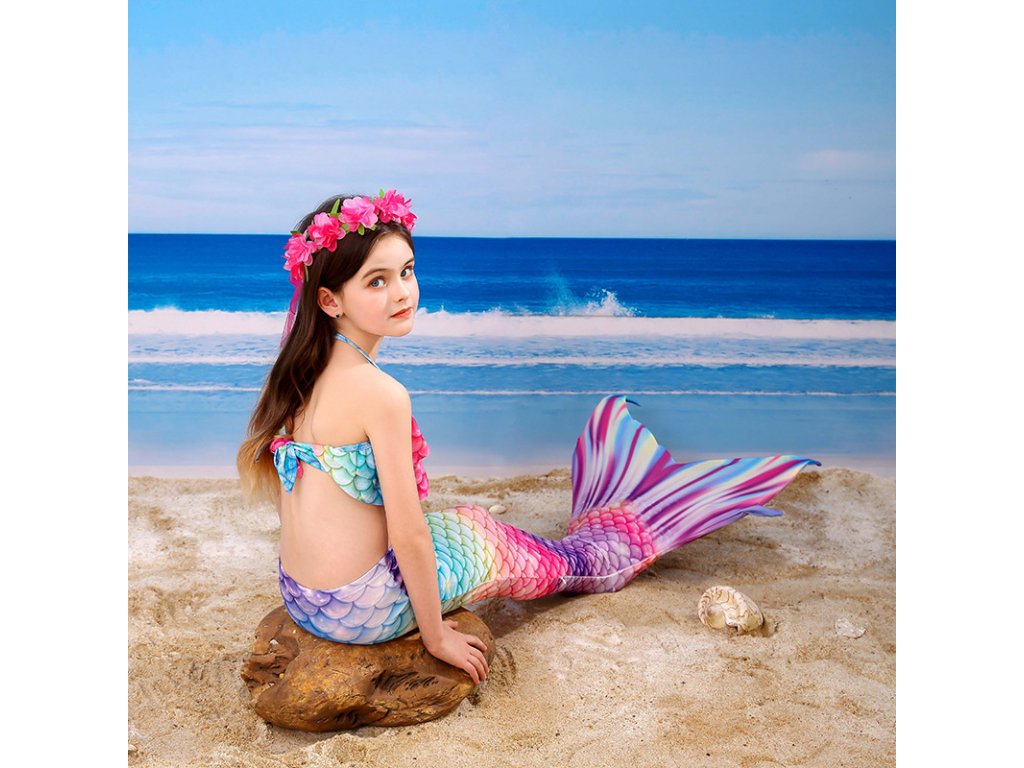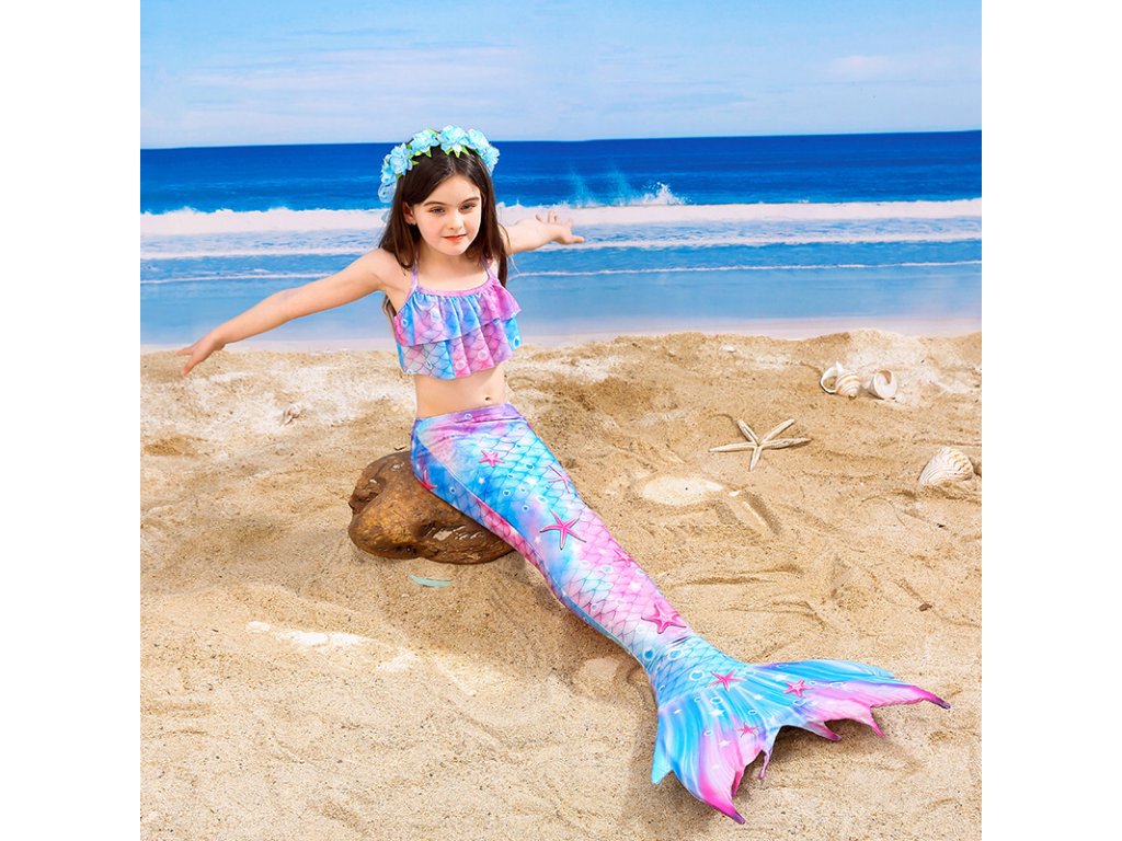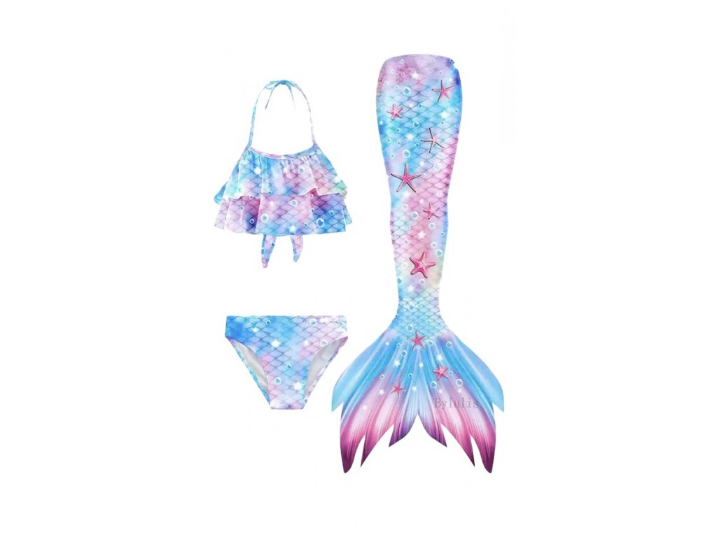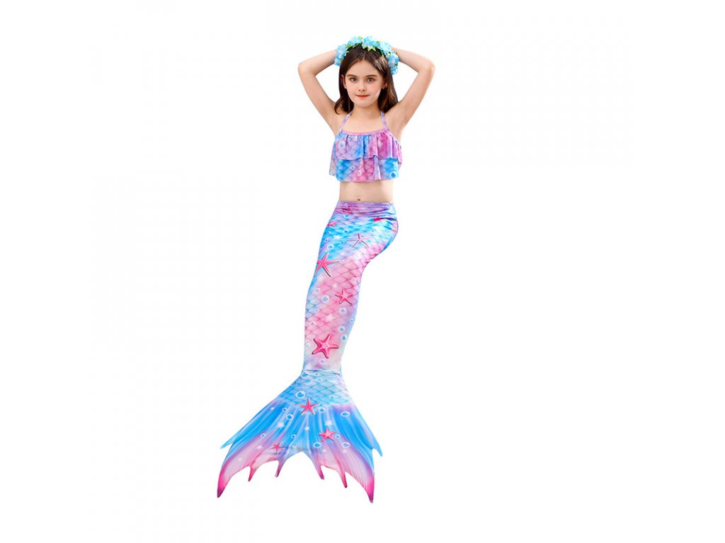 Set obsahuje 2 dílné plavky a návlek na nohy ve tvaru ocasu.