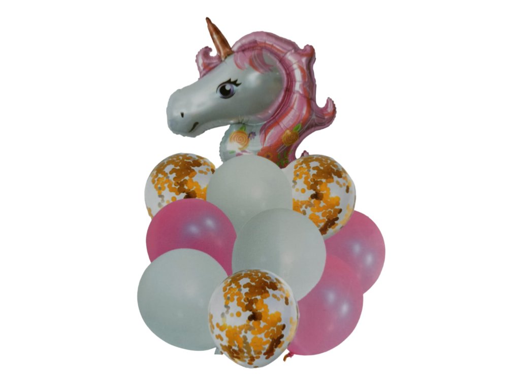 Balení obsahuje: 1 ks foliový balón jednorožec 45 cm 9 ks latexové balony 30 cm Barva balónů závisí na velikosti nafouknutí